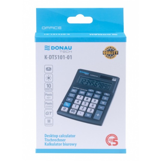 Kalkulator biurowy Donau Tech 10-cyfrowy wyświetlacz 137x101x30mm czarny