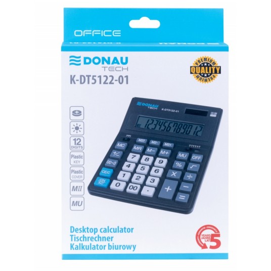 - Kalkulator z 12-cyfrowym wyświetlaczem - Podwójny system zasilania (bateria słoneczna i baterie) - Stały kąt nachylenia wyświetlacza - Wymiar: 201x155x35mm - Funkcja pierwiastka kwadratowego, obliczania marży, obliczania procentów oraz zaokrąglania - Dwie różne lokalizacje pamięci do przechowywania dwóch liczb - Przycisk z podwójnym zerem - 5 lat gwarancji - Kolor: czarny