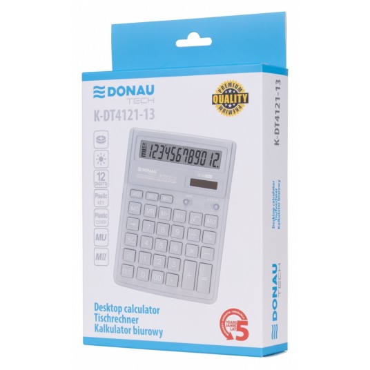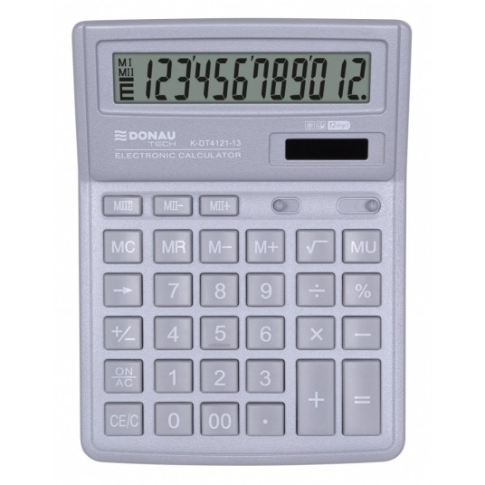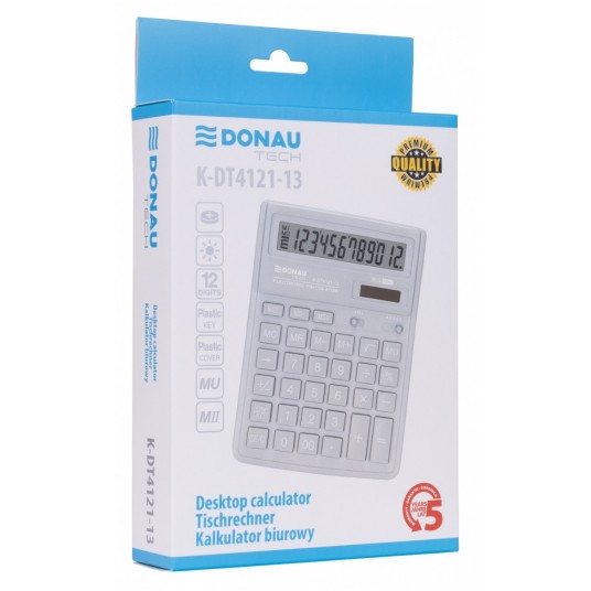 - Kalkulator biurowy z 12-cyfrowym wyświetlaczem z zasilaniem bateryjno-solarnym - Wymiary: 190 x 143 x 40 mm - Funkcja pierwiastka kwadratowego oraz obliczania procentów, obliczanie marży MU, podwójne zero, kasowanie ostatniej pozycji, podwójna pamięć, ustawienie dziesiętne, zaokrąglanie wyniku - Wyłącza się automatycznie - Instrukcja obsługi w języku polskim - 5 lat gwarancji - Kolor: jasny szary