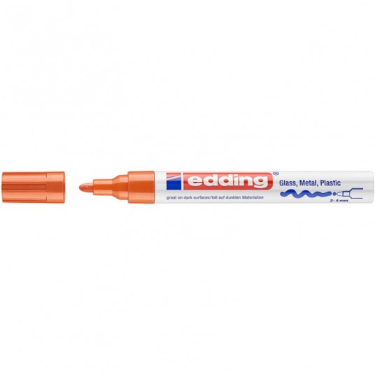 - Połyskujący marker olejowy do trwałego, wysoce kryjącego, odpornego na ścieranie pisania i dekorowania gładkich powierzchni - również ciemnych lub transparentnych, np. szkła, metalu, plastiku i szkła powlekanego - Okrągła końcówka pisząca o szerokości 2-4 mm - Pigmentowy tusz przypominający farbę jest szybkoschnący, odporny na zmienne warunki atmosferyczne, wyjątkowo odporny na działanie światła i na ścieranie - Zapasowe końcówki (wymienne końcówki do edding 750) są dostępne - Bezwonny tusz bez dodatku toulenu/ksylenu - Wysokiej jakości aluminiowa obudowa - Kolor: pomarańczowy