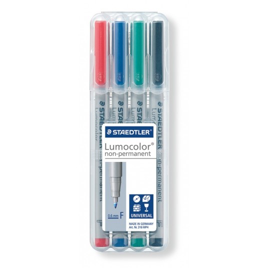 - Zestaw zawiera 4 kolory w etui (czerwony, niebieski, zielony, czarny)
