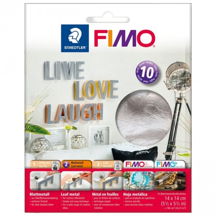 Akrusze metaliczne Fimo leaf metal, 7 sztuk, srebro
