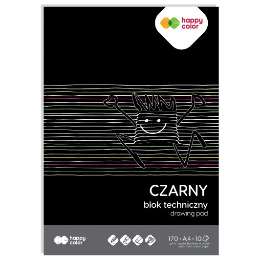- Idealnie czarny papier, doskonały do rysowania - Papier barwiony w masie o ziarnistej powierzchni - Bezkwasowy, bezdrzewny - Wysoka odporność na blaknięcie przez promienie UV - Posiada certyfikat Blue Angel oraz FSC - Zastosowanie: kredka, pastele, pisaki metaliczne, gel peny, kreda, prace manualne - Gramatura: 170 g/m2 - 10 arkuszy - Format A4