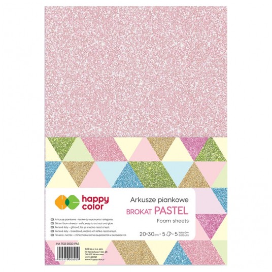 - Elastyczne i miękkie arkusze z mikrogumy z efektem brokatu - Są łatwe do wycinania, zszywania i sklejania - Idealne do tworzenia prac, które uzyskują efekt przestrzenny, na kartki świąteczne, laurki - Doskonałe do tworzenia dekoracji na ściany pokoju dziecka, do tworzenia zabawek oraz modeli pływających i podwieszanych, a także ozdób - Grubość 2 mm - Format A4 - 5 arkuszy w opakowaniu - Efekt: brokat (jednostronny) - Kolor: mix kolorów pastelowych (różowy, fioletowy, błękitny, zielony, złoty)