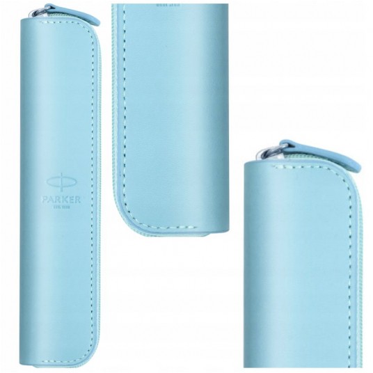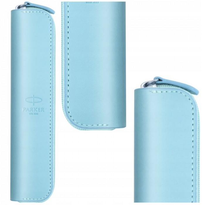 - Etui Parker wykonane ze skóry w odcieniu delikatnego koloru niebieskiego- Etui przeznaczone na pojedynczy produkt- Zapinane na zamek błyskawiczny- Wymiary: 160 mm x 36 mm x 17 mm