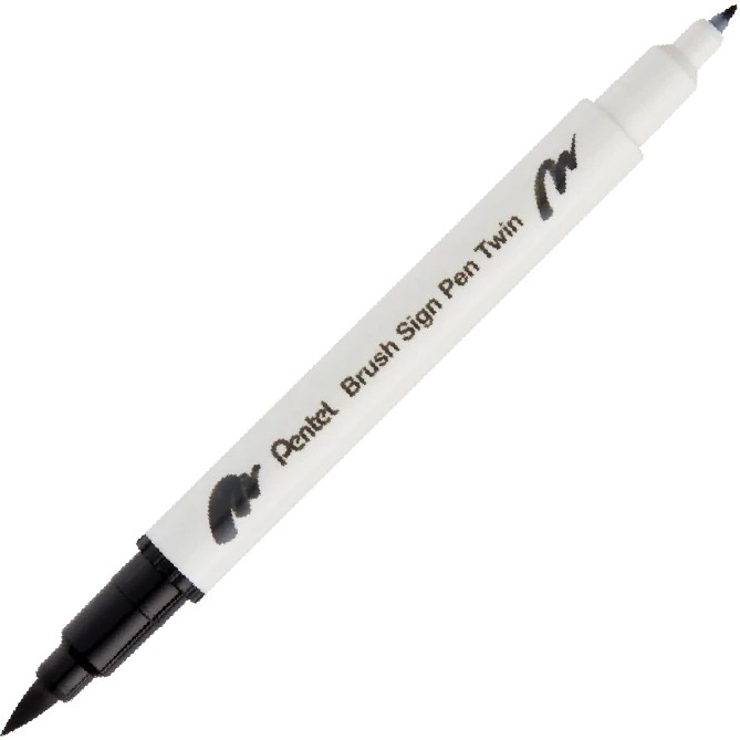 - Brush Sign Pen Twin jest łatwy w użyciu, dzięki tuszowi na bazie wody oraz przezroczystej nasadce, która ułatwia rozpoznanie koloru tuszu; to idealne narzędzie zarówno dla początkujących, jak i zaawansowanych użytkowników