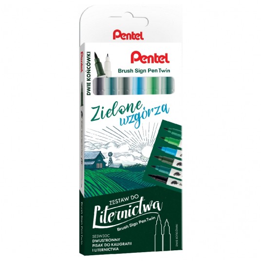 - Zestawy kolorystyczne: dostępny w 6 nowych zestawach do liternictwa i kaligrafii, które zawierają po 6 dwustronnych pisaków SESW30C