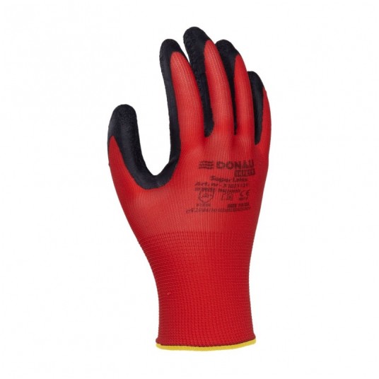 - Rękawice wykonane z dobrej jakości dzianiny poliestrowej w kolorze czerwonym, powleczone w części chwytnej szorstkowanym lateksem w kolorze czarnym - Przeznaczone do prac montażowych, magazynowych, mechanicznych, serwisowych, transportowych, budowlanych, remontowych, przemysłowych, rolniczych, ogrodowych oraz zajęć hobbistycznych - Powłoka z szorstkowanego lateksu jest odporna na ścieranie oraz zapewnia dobry chwyt - Zakończone elastycznym ściągaczem - Rękawice ochronne chroniące przed uszkodzeniami mechanicznymi - Kat: II - Zgodność z normami EN 388:2016+A1:2018 (3131X), EN ISO 21420:2020 - Ścieg: 13g - Materiały: poliester/lateks - Kolor: czerwono-czarny - Rozmiar: 8