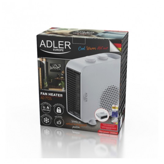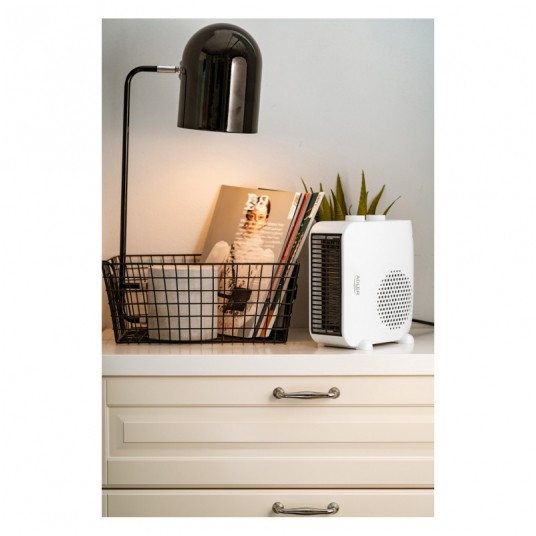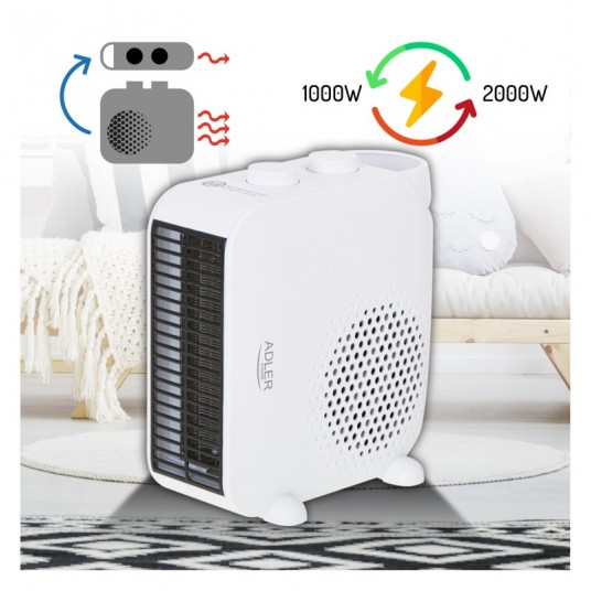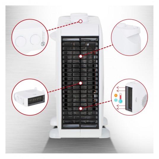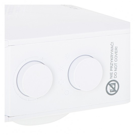 termowentylator dwa stopnie mocy: 1000 W, 2000 W termostat do regulacji temperatury nadmuchu funkcja wentylatora - zimny nadmuch praca w pozycji pionowej lub poziomej zabezpieczenie przed przegrzaniem lampka kontrolna termostatu moc 2000W kolor: biały