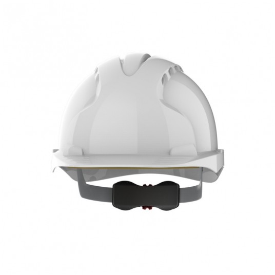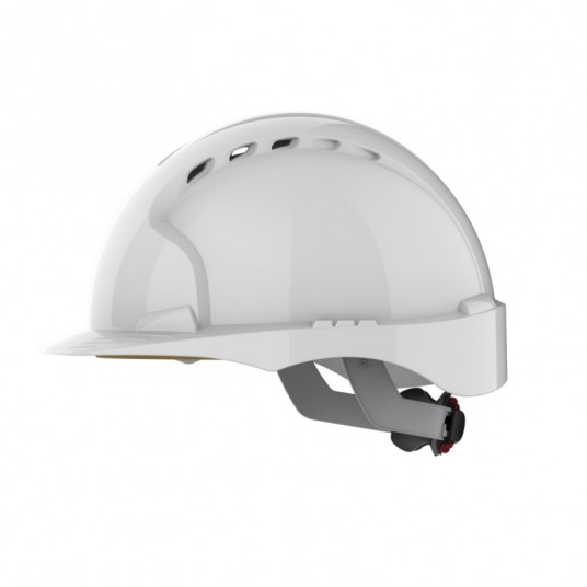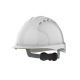 Hełm ochronny zgodny z normą EN 397 dotyczącą hełmów przemysłowych Hełm wentylowany Hełm oferujący bardzo dobrą ochronę i przeznaczony do pracy przy dużym ryzyku spadających przedmiotów jak np: budowy, wyburzenia Mocna skorupa wykonana z tworzywa HDPE Komfortowa, 6-punktowa więźba tekstylna 3 punktowa regulacja głębokości więźby Regulacja obwodu pokrętłem Revolution Dwa gniazda boczne do montażu akcesoriów jak ochronniki słuchu czy ochrona wzroku Możliwość nadruków w zależności od ilości zamawianych hełmów Kolor: biały