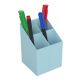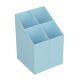 przybornik na biurko, niezbędny do podstawowej organizacji akcesoriów biurowych trwały i stabilny wykonany z odpornego na pęknięcia tworzywa z czterema przegrodami o głębokości 90 mm i 110 mm wymiary: 75 x 75 x110 mm kolor: pastelowy niebieski