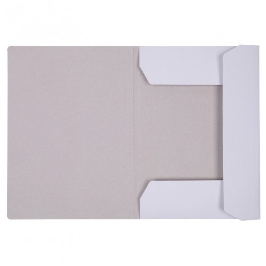 teczka z gumką z wielokrotnie powlekanej, wysokiej jakości tektury o odczynie bezkwasowym (powyżej > 7,5 pH) - oznaczenia dokonano metodą badań wg PN-84/P-50109 (potwierdzenie do pobrania w zakładce: POBIERZ) gramatura 250g/m2 pionowa gumka i trzy wewnętrzne skrzydła zabezpieczające chronią zawartość przed wysunięciem format: A4 rozmiar: 23,5 x32 cm kolor: biały