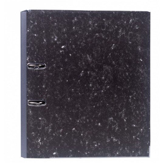 ekonomiczny segregator wykonany z tektury o grubości 2,2mm i gramaturze 1400gsm, wyposażony w dolną listwę wzmacniającą wewnątrz wyklejka papierowa o szarym zabarwieniu metalowy mechanizm i metalowa dźwignia wysokiej jakości z dociskaczem wzmocniony otwór na palec szerokość grzbietu: 80mm wymiary: 80x320x300 mm 5 lat gwarancji na mechanizm dźwigniowy opakowanie 10 szt. kolor: szary