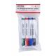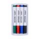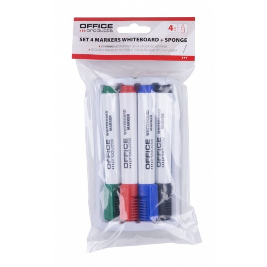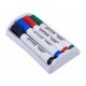 zestaw do tablic suchościeralnych zawierający cztery markery i gąbkę magnetyczną zestaw można łatwo przyczepić do tablicy, co zapewnia wygodę i porządek marker w plastikowej, białej obudowie skuwka rowkowana z klipsem i końcówka markera w kolorze tuszu szybkoschnący tusz na bazie alkoholu nietoksyczny bez dodatku ksylenu i toluenu okrągła, fibrowa końcówka grubość linii pisania: 1-3 mm zawartość tuszu: 3g (3ml) kolory markerów: czarny, czerwony, niebieski i zielony gąbka o wymiarze 150 mm x 82 mm wykończona filcem umożliwiającym usuwanie śladów markerów nie rysuje powierzchni tablicy