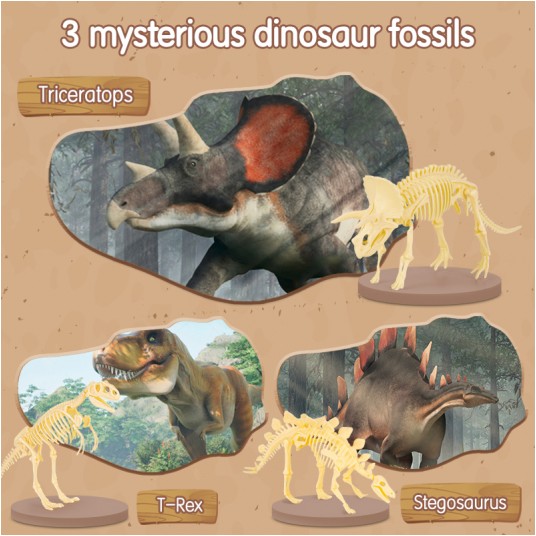 Rozwój przez eksplorację – zestaw wspiera rozwój zdolności poznawczych, cierpliwości i umiejętności manualnych, zachęcając dzieci do odkrywania tajemnic prehistorycznego świata.