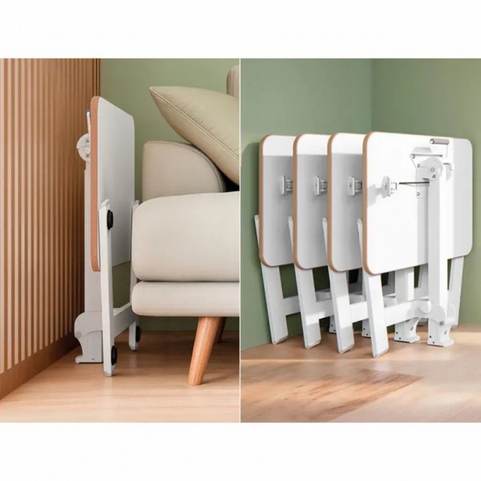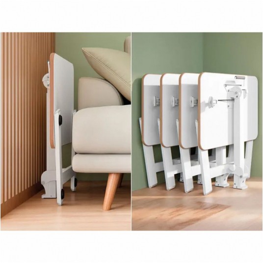 - Blat i nóżki można całkowicie złożyć, co sprawia, że to małe biurko łatwo jest przechować (po złożeniu ma zaledwie 16 cm szerokości)
