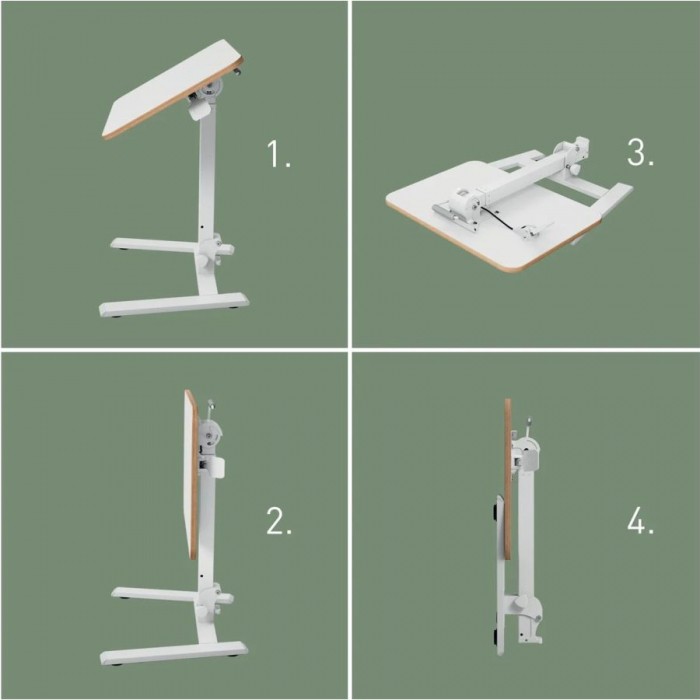 - Pomysłowo zaprojektowane ergonomiczne biurko pod laptopa do pracy w pozycji siedzącej i stojącej idealnie pasuje do małych przestrzeni