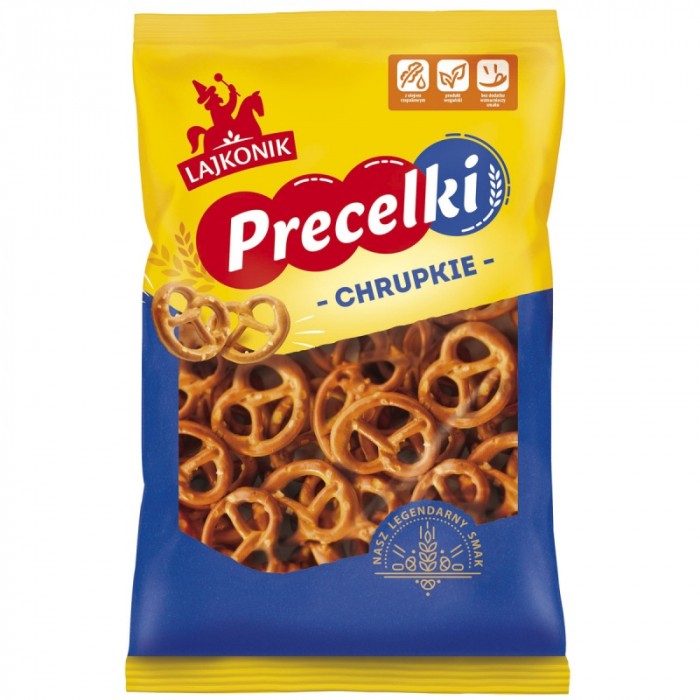 - Lekka, idealnie chrupiąca przekąska w kształcie tradycyjnego precla