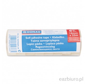 - najwyższej jakości krystalicznie transparentna taśma biurowa - idealna do prac, gdzie estetyczny wygląd jest sprawą priorytetową - odrywanie bez konieczności używania nożyczek - nie żółknie z upływem czasu - szerokość: 19mm - długość: 33m - 7+1 sztuk w j.s. - 1 rolka GRATIS
