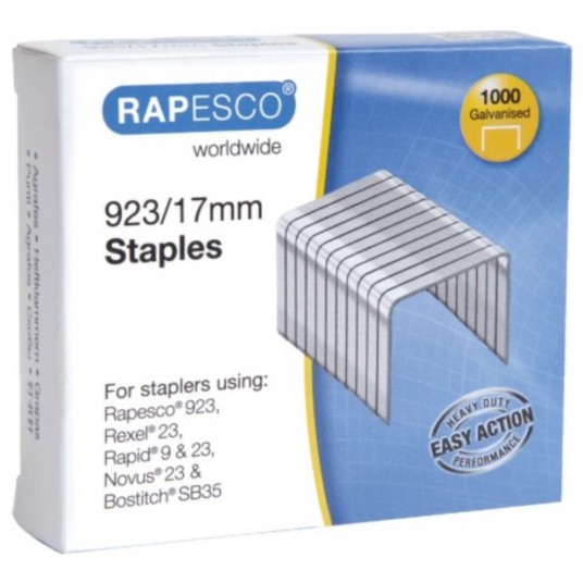 - Produkt: Zszywki Rapesco 923/17 1000 sztuk - Marka: Rapesco - Rozmiar: 923/17 - Zestaw kompletny- zawiera 10 bloczków zszywek (1000 zszywek) - Wysokiej jakości ocynkowane zszywki do zszywaczy Rapesco Heavy Duty, które korzystają ze zszywek typu 923 - Wysokiej jakości drut stalowy z ocynkowanym wykończeniem, które zwiększa wytrzymałość