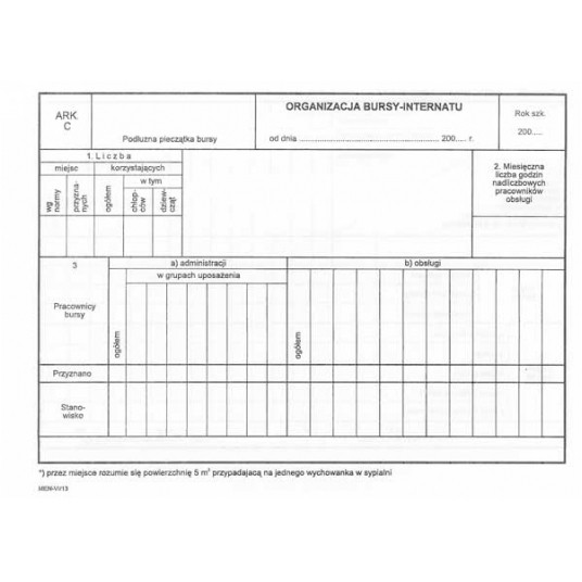 ARKUSZ ORGANIZACYJNY BURSY I INTERNATU VI/13 - arkusz organizacyjny bursy i internatu. Format: A-5