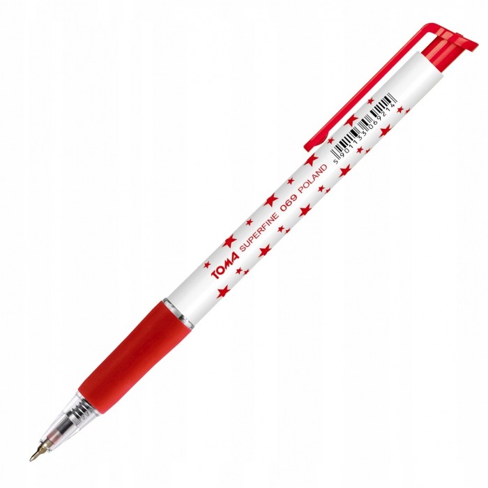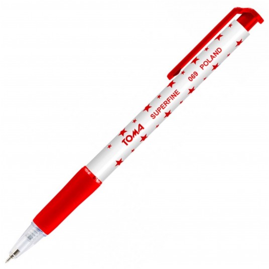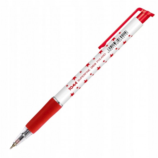 - w plastikowej obudowie w gwiazdki w kolorze tuszu - trwała kulka z węglików spiekanych 0,5 mm - trwały mechanizm włączający - wygodny, gumowany uchwyt - 4 kolory tuszu - wkład - szwajcarska technologia Floating Ball System