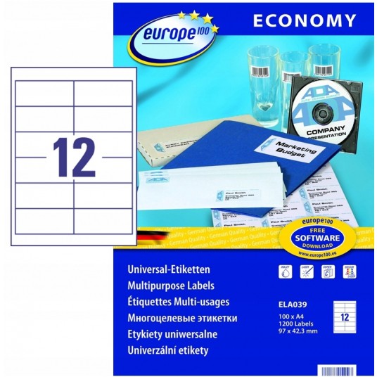 Etykiety A4 97x42,3 mm mm uniwersalne economy europe100 by Avery Zweckform; A4, 100 ark.
