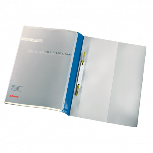 - Skoroszyt Esselte Panorama - Bardzo wytrzymały, znakomicie chroni zawartość - Z kieszonką na przedniej okładce do personalizacji - Duża pojemność - PVC - Z 2 kieszeniami. A4 - Skoroszyt plastikowy, skoroszyt - Przezroczysta, antyrefleksyjna okładka do poglądu pierwszej strony dokumentu - Z wewnętrzną kieszenią na luźne dokumenty - Mechanizm skoroszytowy o długości 8 cm - Mieści 250 A4 kartek (80 gsm)