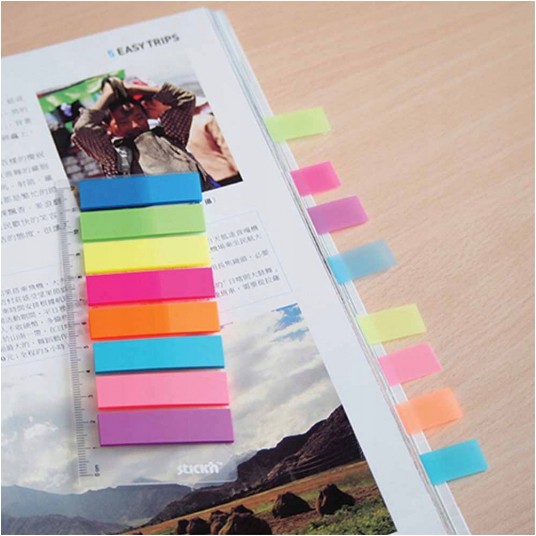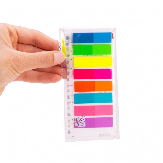 - Klasyczne zakładki indeksujące w 8 kolorach neonowych: niebieskim, zielonym, żółtym, różowym, pomarańczowym, jasnoniebieskim, jasnoróżowym i fioletowym - 8 bloczków po 25 zakładek o wymiarach 45 x 12 mm - Opakowanie zawiera dodatkowo 12 cm linijkę - Zakładki umożliwiają łatwe znaczanie i szybkie odnajdywanie ważnych informacji