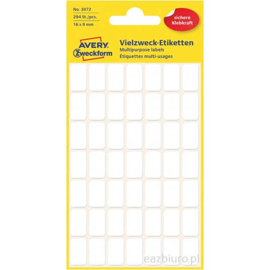 Białe minietykiety do opisywania ręcznego Avery Zweckform; 294 etyk./op., 16 x 9 mm