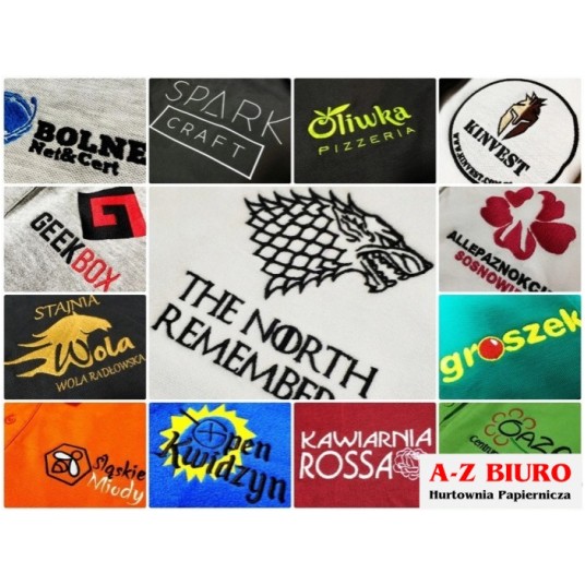 Możliwość dokupienia dodatkowych kolorów w pozycji "kolor dodatkowy'' (do każdej zakupionej sztuki produktu trzeba dokupić kolory osobno). Maksymalna ilość kolorów haftu na jednym produkcie: 6.