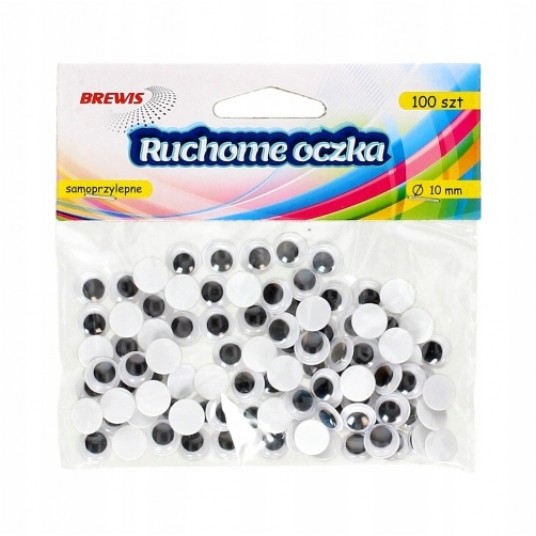 - Ruchome oczka idealnie nadają się do wszelkiego rodzaju aktywności twórczej- Doskonale sprawdzają się w przeróżnych techikach wykonania- Rozmiar : 10mm- Kształt : okrągłe - Ilość w opakowaniu : 100szt