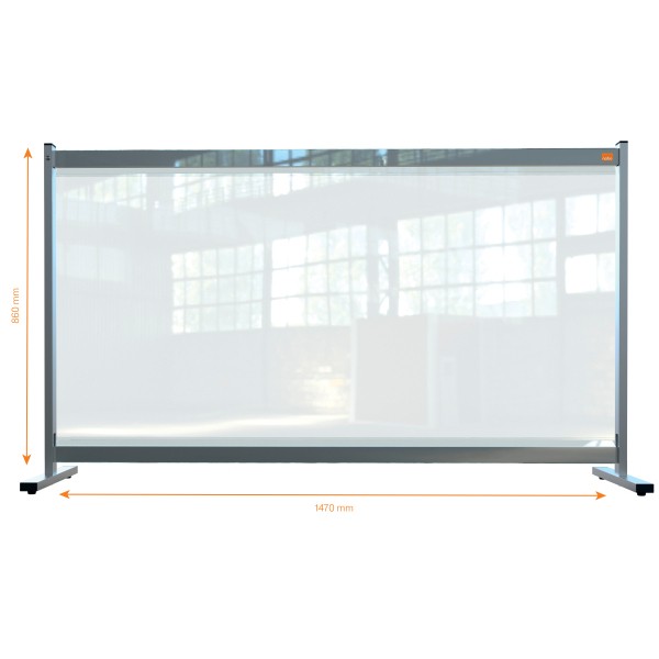 - Przezroczysty ekran dzielący na biurko Nobo z PCV zapewnia proste, ale skuteczne rozwiązanie dystansowania społecznego w każdym otoczeniu, jednocześnie umożliwiając przejrzystą i bezpieczną komunikację. - Przegroda dzieląca na biurko jest łatwa w montażu i ma całkowitą wysokość 1,6 m po umieszczeniu na standardowym biurku lub stole; zapewniając dobry poziom ochrony. - 500-mikronową powierzchnię PCV można łatwo przetrzeć, a przezroczysta konstrukcja oznacza, że naturalne światło nie jest ograniczane. - Zawiera odporne na warunki pogodowe wykończenie malowane proszkowo, które nadaje się zarówno do użytku wewnątrz, jak i na zewnątrz. - Rozmiar 1470 x 860 mm.