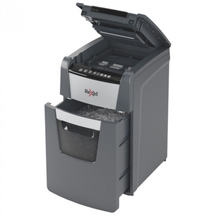 - Oszczędność 98% czasu - Podajnik automatyczny AutoFeed zapewnia łatwą i oszczędną czasowo obsługę niszczarki - zaoszczędzisz 98% czasu w porównaniu do niszczczarek z podajnikiem ręcznym - Technologia zapobiega zacięciom - Niszczy także karty kredytowe, zszywki i spinacze - Dotykowy panel sterowania - Czujnik na podczerwień informuje o wypełnieniu pojemnika na ścinki. - Ultraniski poziom hałasu: 55 dBA - Konfetti (4x28mm) - Czas nieprzerwanej pracy 30 minut - Kosz na ścinki 44 l - Gwarancja 2 lata
