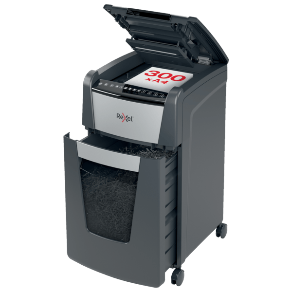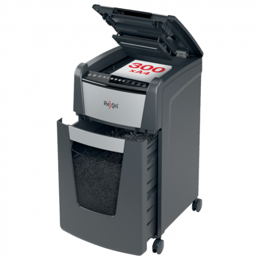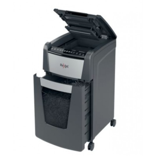 - Oszczędność 98% czasu. - Podajnik automatyczny AutoFeed zapewnia łatwą i oszczędną czasowo obsługę niszczarki - zaoszczędzisz 98% czasu w porównaniu do niszczczarek z podajnikiem ręcznym. - Technologia zapobiega zacięciom. - Niszczy także karty kredytowe, zszywki i spinacze. - Dotykowy panel sterowania. - Czujnik na podczerwień informuje o wypełnieniu pojemnika na ścinki. - Ultraniski poziom hałasu: 55 dBA. - mikrościnki (2x15 mm) - czas nieprzerwanej pracy 60 minut - kosz na ścinki 60 l - gwarancja 2 lata