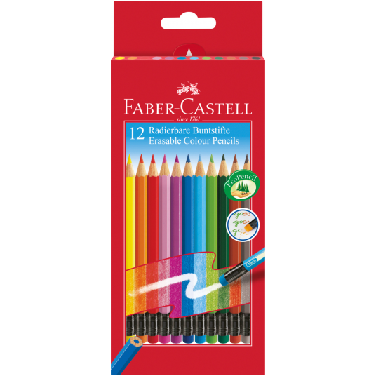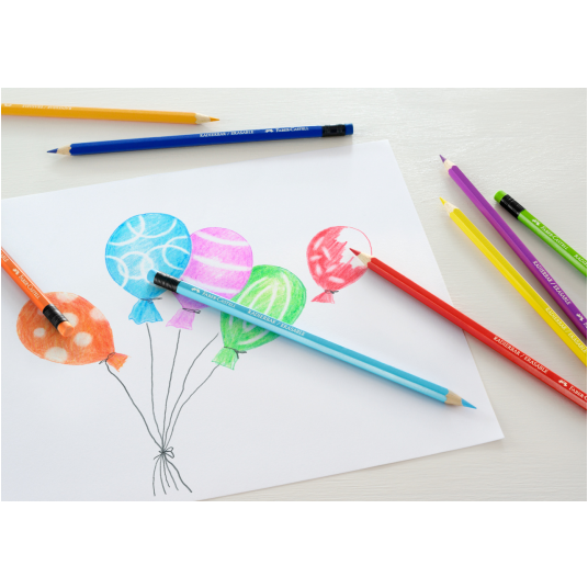 - Klasyczne kredki ołówkowe o przekroju sześciokąta. - Intensywne, nasycone kolory. - Kolorowa gumka do ścierania, kolorystycznie zgodna z kolorem kredki. - Spieralne z większości tkanin. - Specjalna technologia klejenia (SV) ogranicza łamanie się grafitu (nawet podczas upadku). - Powierzchnia pokryta lakierem na bazie wody – bezpieczne dla środowiska i zdrowia dzieci. - Wysokiej jakości drewno – gwarancja łatwego temperowania przy użyciu standardowych temperówek. - 12 kolorów w opakowaniu kartonowym.