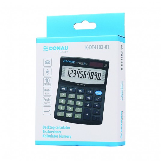 - Kalkulator biurowy z 10-cyfrowym wyświetlaczem z zasilaniem bateryjno-solarnym - Wymiary: 125 x 100 x 27 mm - Kasowanie ostatniej pozycji oraz obliczania procentów - Wyłącza się automatycznie - 5 lat gwarancji - Kolor: czarny