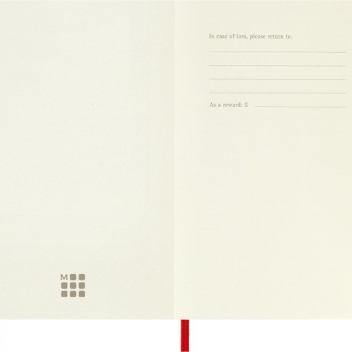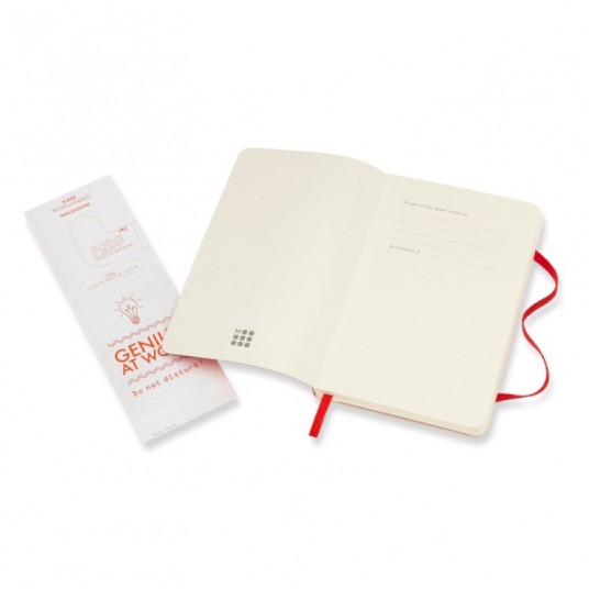 Notes Moleskine Classic P (9x14cm) gładki, miękka oprawa, czerwony, 192 strony Legendarna kolekcja notesów w różnych kolorach i wielkościach znana na całym świecie. Do produkcji został użyty standardowy bezkwasowy papier certyfikowany FSC® w kolorze kości słoniowej. Zrobiony z barwionej masy, doskonale nadaje się do zapisywania notatek długopisem oraz ołówkiem. FUNKCJE miękka oprawa zaokrąglone rogi elastyczne zamknięcie – gumka pasująca do koloru okładki zakładka – wstążka rozszerzalna kieszeń wewnętrzna z tektury i tkaniny papier o gramaturze 70 g/m2 w kolorze kości słoniowej ROZMIAR: P 9 × 14 cm 192 strony UKŁAD: gładki