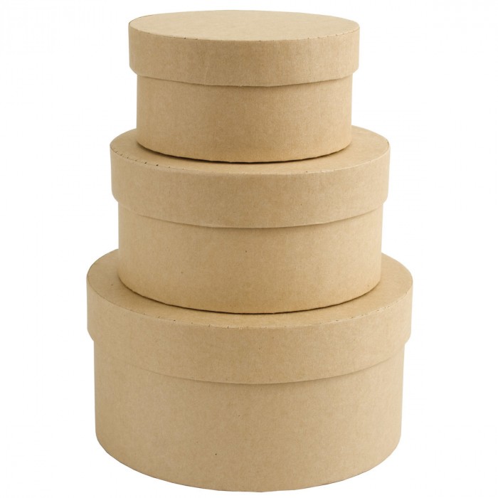 - Tekturowe pudełka do samodzielnego zdobienia stanowią idealną bazę pod indywidualne projekty - Można dekorować je brokatem, kryształkami, stemplować lub ozdabiać metodą embossingu - Zestaw zawiera trzy, różnej wielkości okrągłe pudełka, wykonane z wysokiej jakości tektury - Wymiary: średnica: 14,7 cm, średnica: 12,7 cm, średnica: 10,2 cm