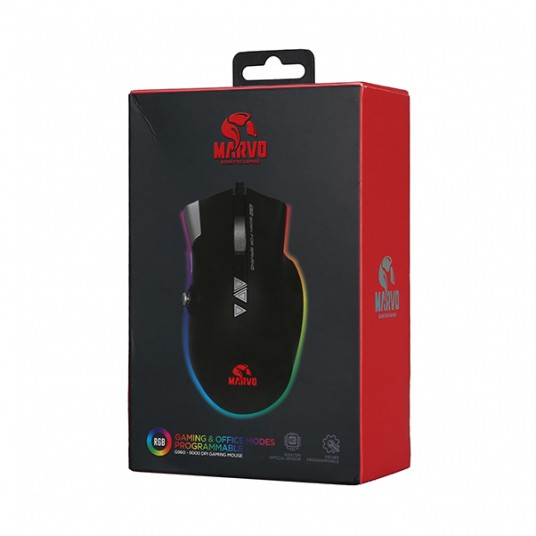 Mysz przewodowa Marvo g960, 9000dpi, optyczna, czarna, do gry, podświetlana, boczny joystick, 12 klawiszy