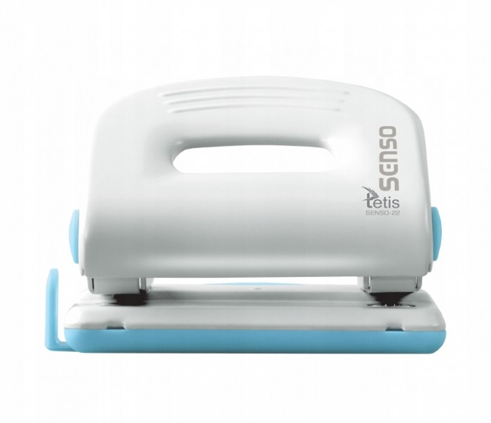 - Metalowy dziurkacz biurowy z wykończeniami z tworzywa sztucznego